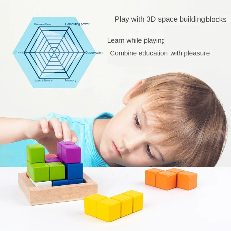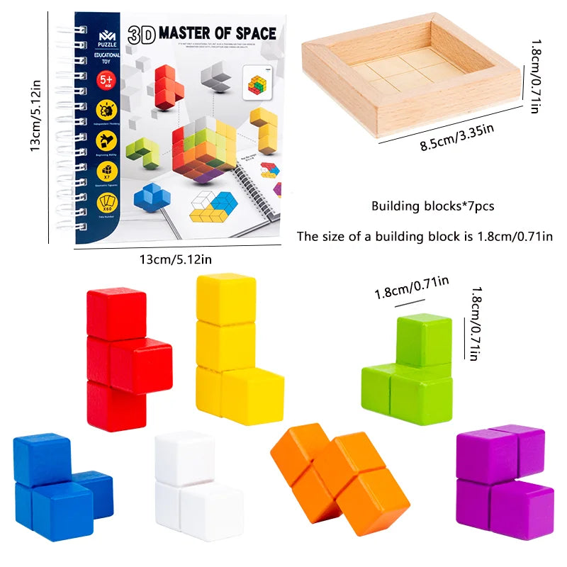 3D Soma Cube Puzzle for Adults and Kids with 60 Challenges - Brain Teaser Wooden Block Math Puzzle Cube Montessori Educational Toy Gifts - Magic Cubes Games for Ages 4+
