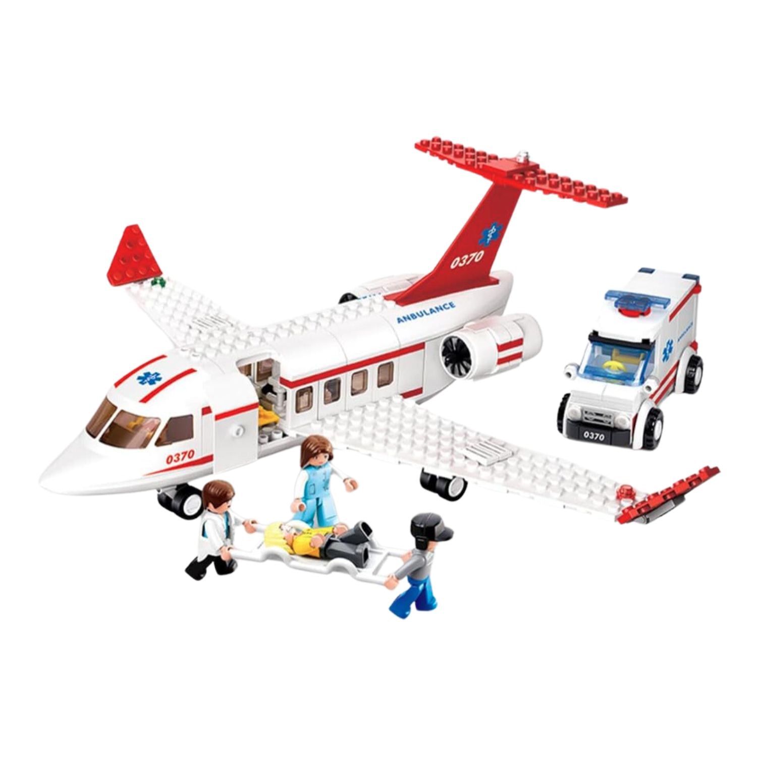 - Vibrant Red and White Fuselage: The striking appearance of the airplane, paired with the ambulance, forms a complete first aid airport set.
